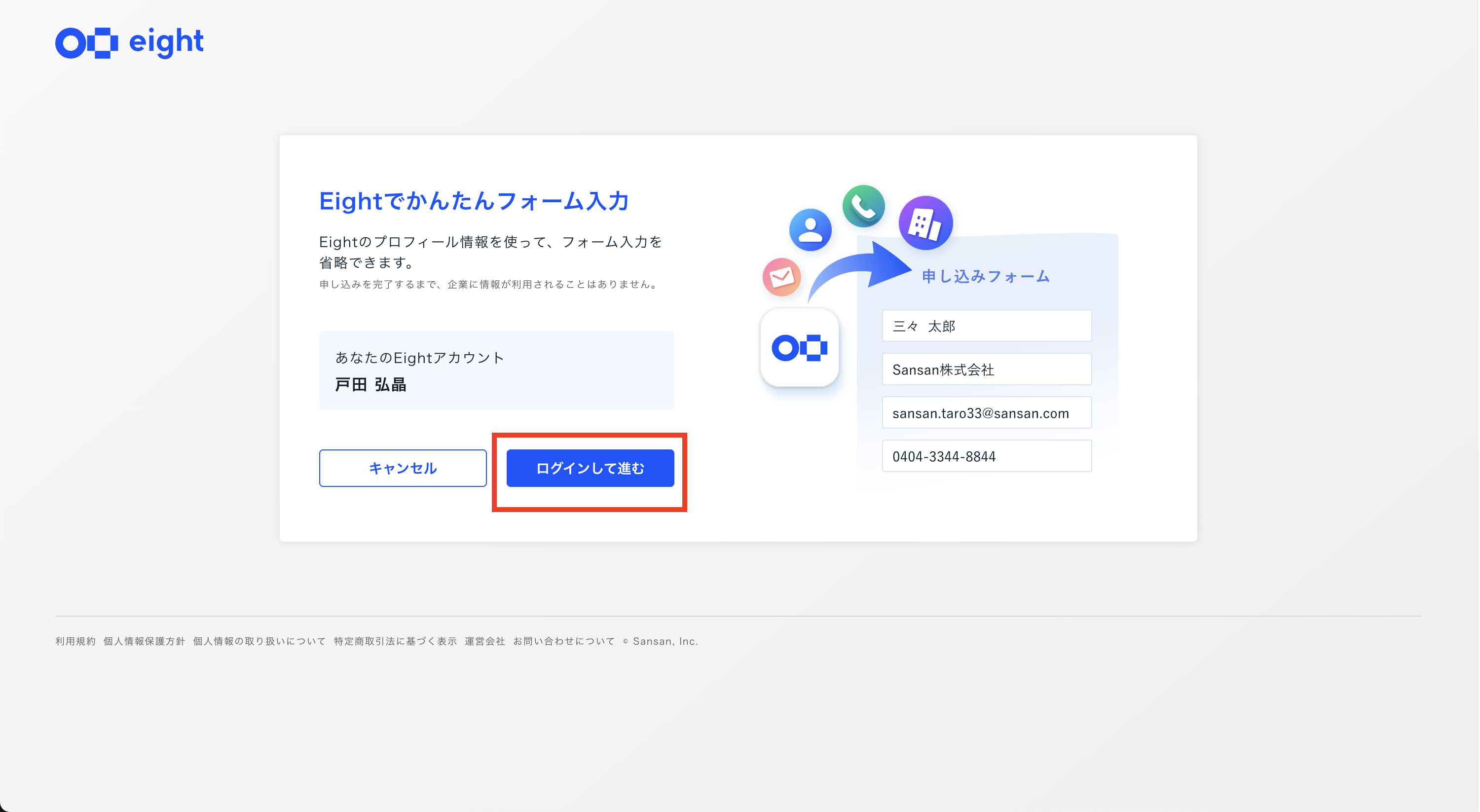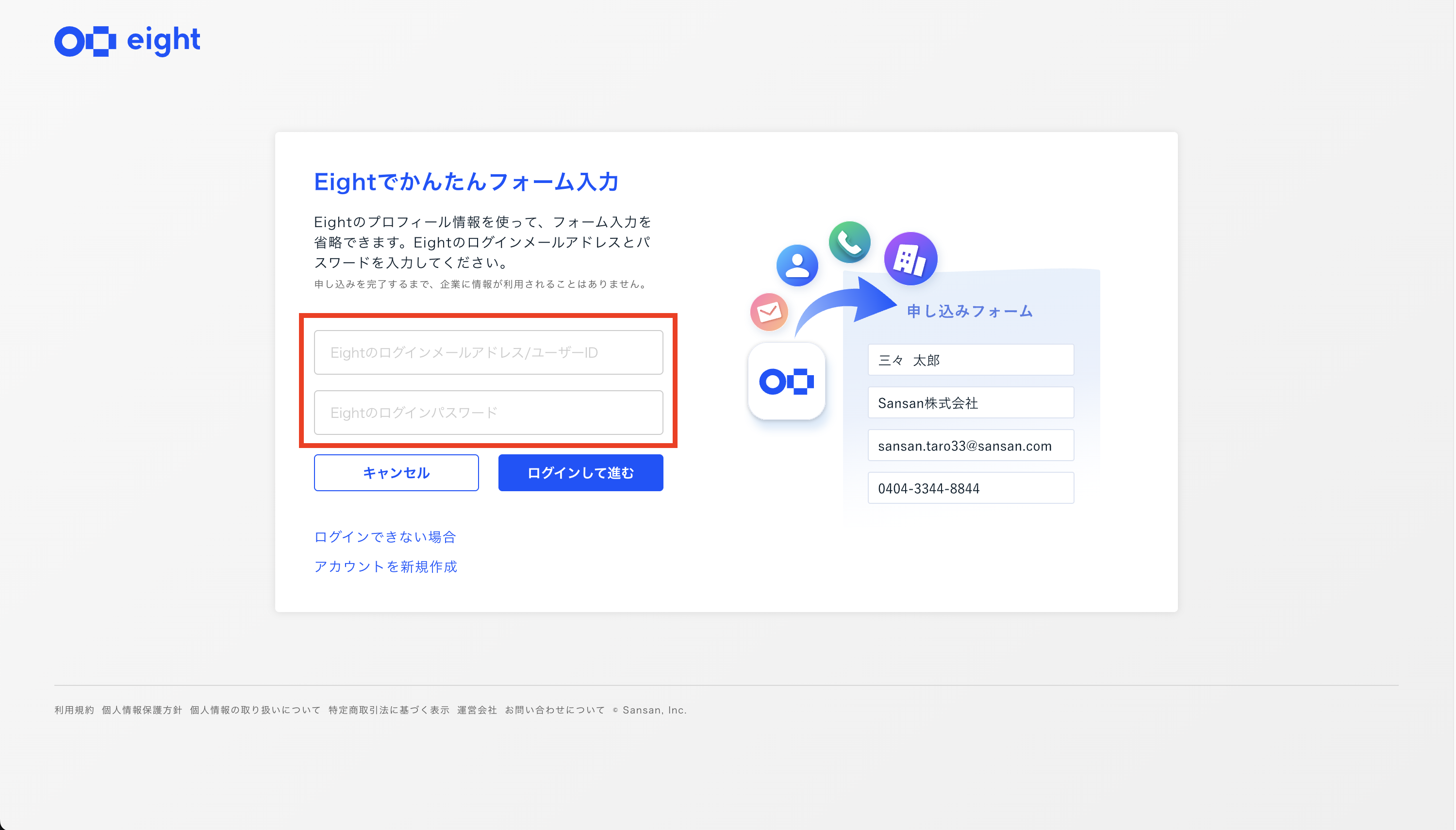 Eightアカウントをお持ちの方は、ログインすることでスムーズにお申し込みいただけます。