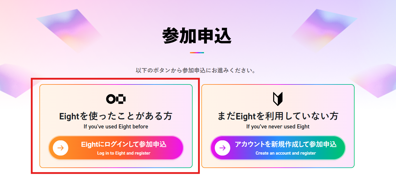 STEP 2 「Eightにログインして参加申込」ボタンをクリック