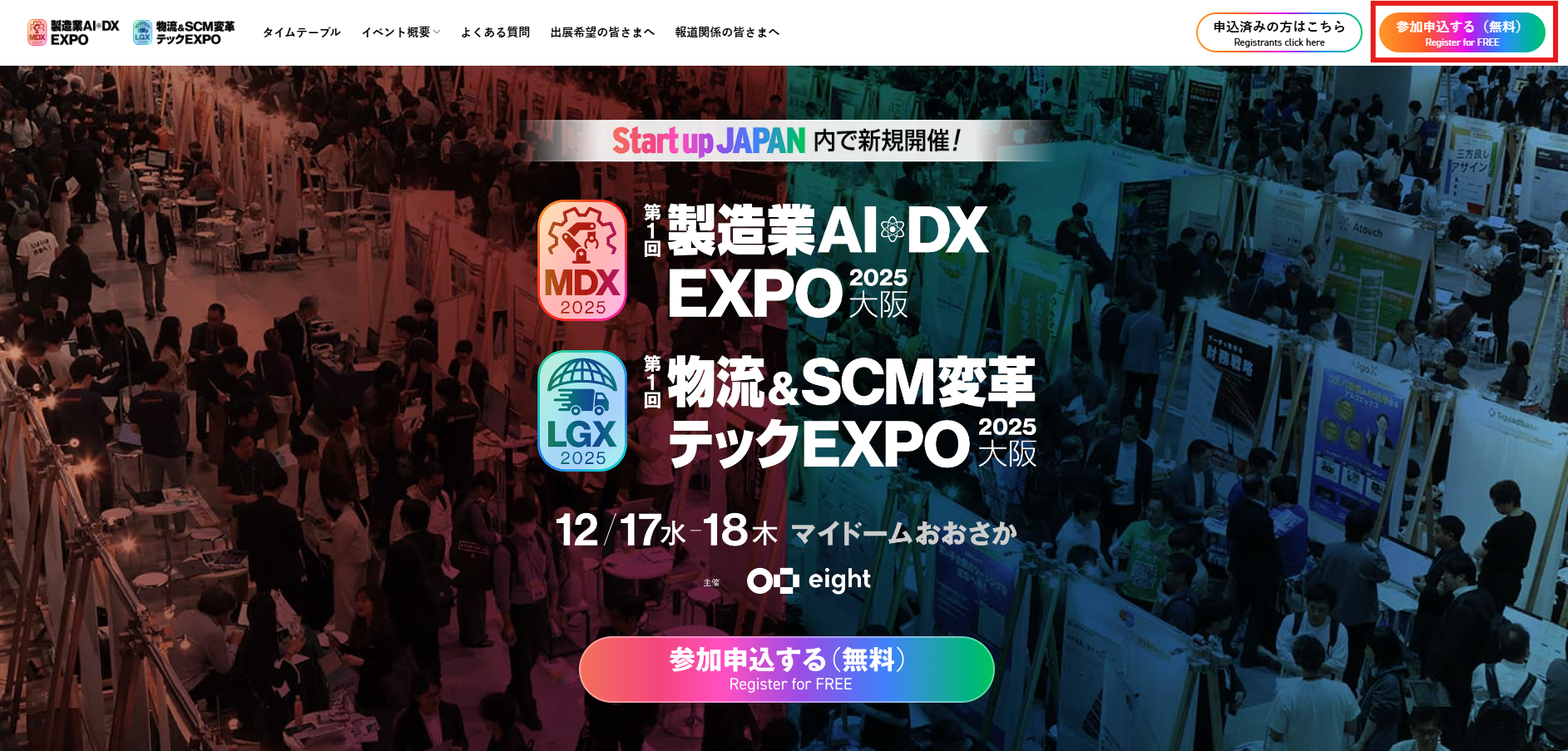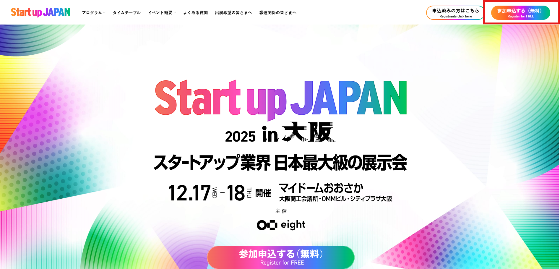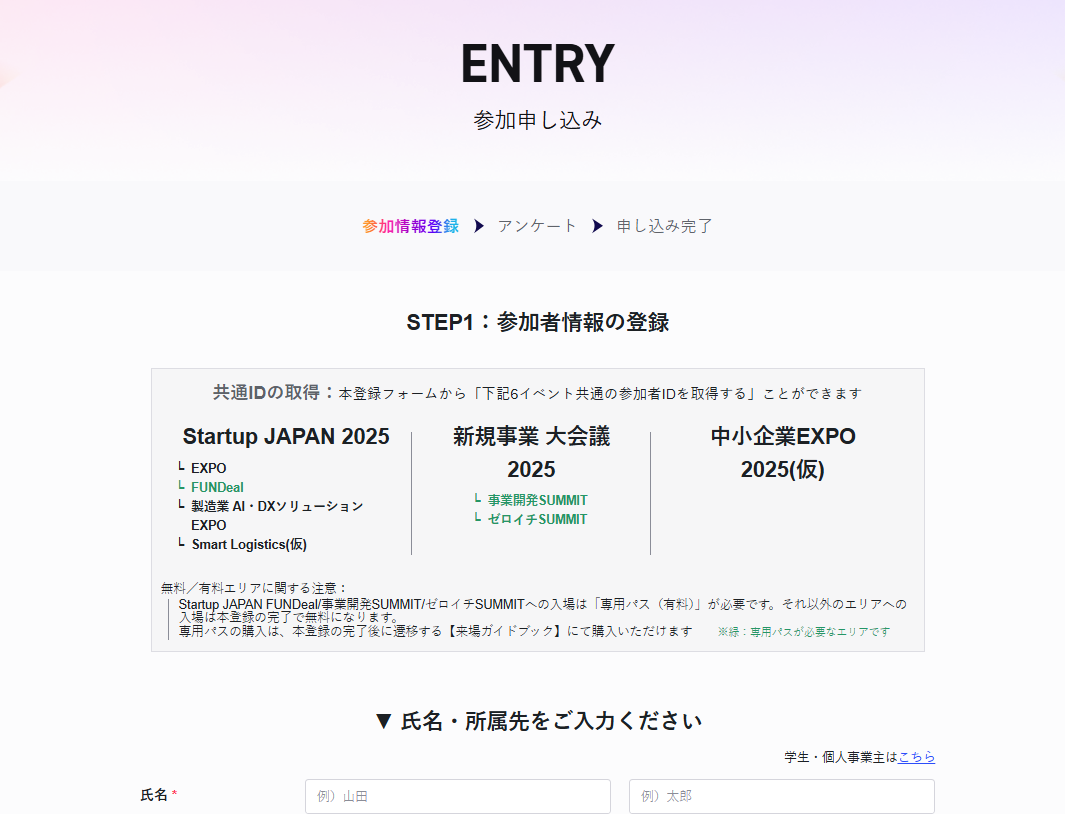 ※本ページでは「Startup JAPAN EXPO 2025 in 大阪」の公式サイト画像を使用していますが、各イベントの登録導線は共通のため、参考としてご確認ください。