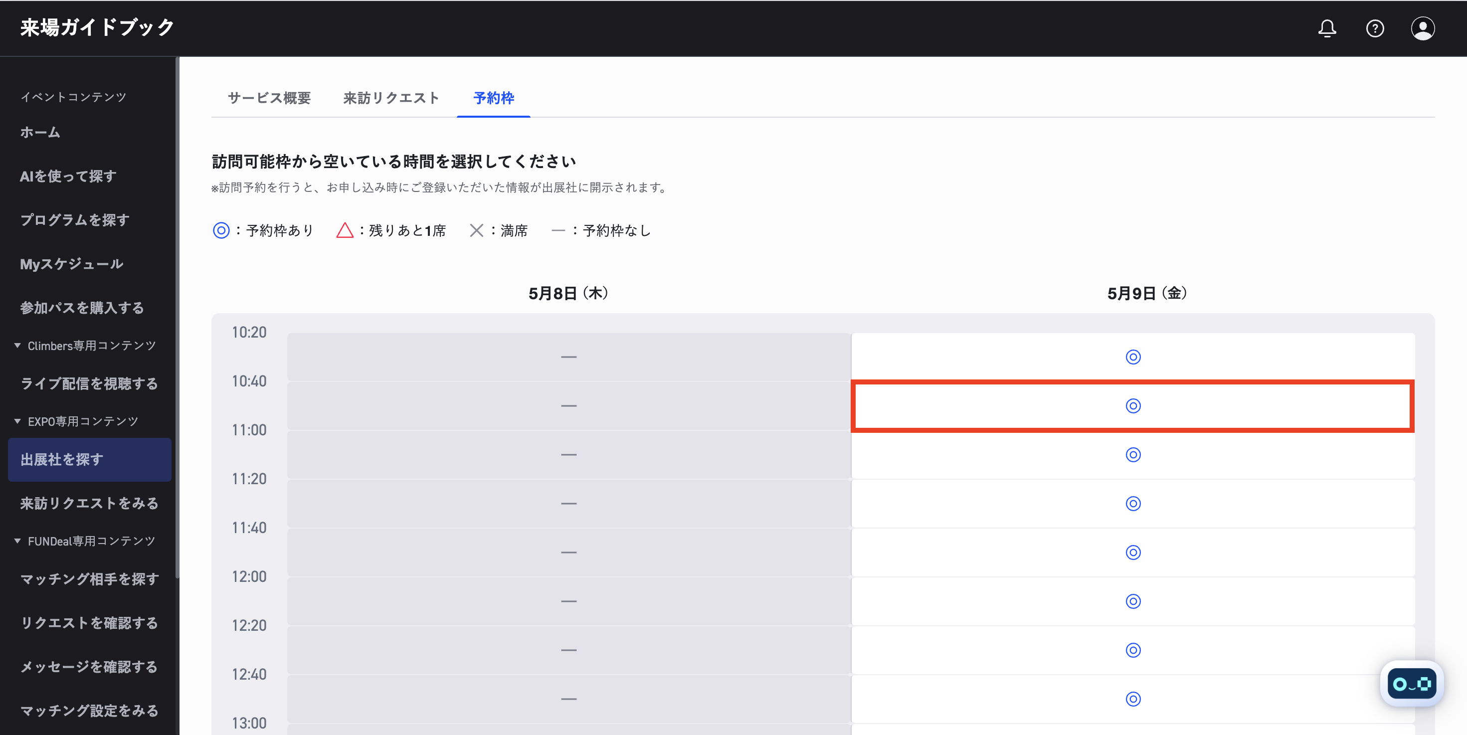 STEP 5 ブースを訪問する日時を選択する