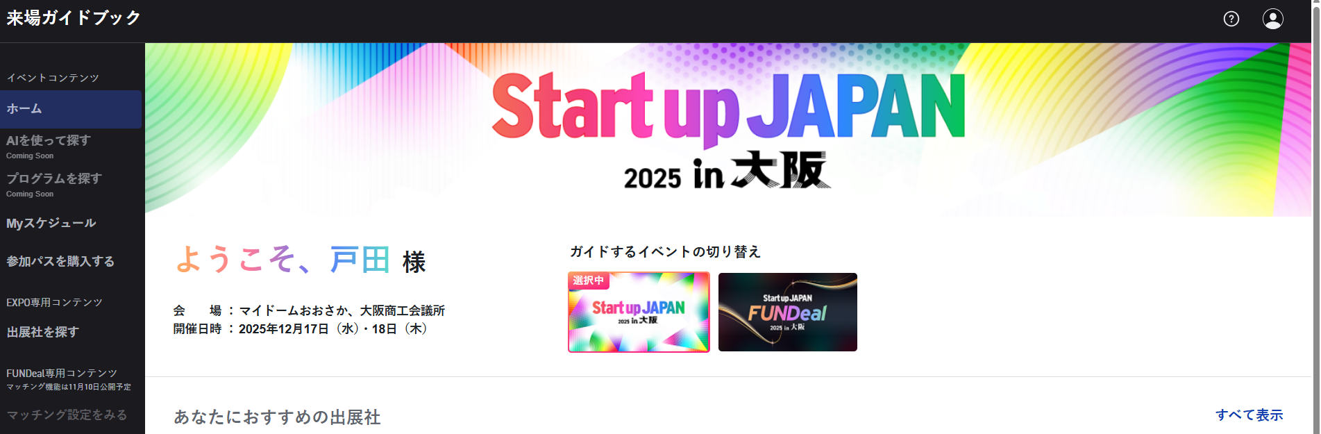 ※本ページでは「Startup JAPAN EXPO 2025 in 大阪」の画像を使用しておりますが、来場者ガイドブックの各イベントの操作導線は同じため、参考用としてご確認ください。