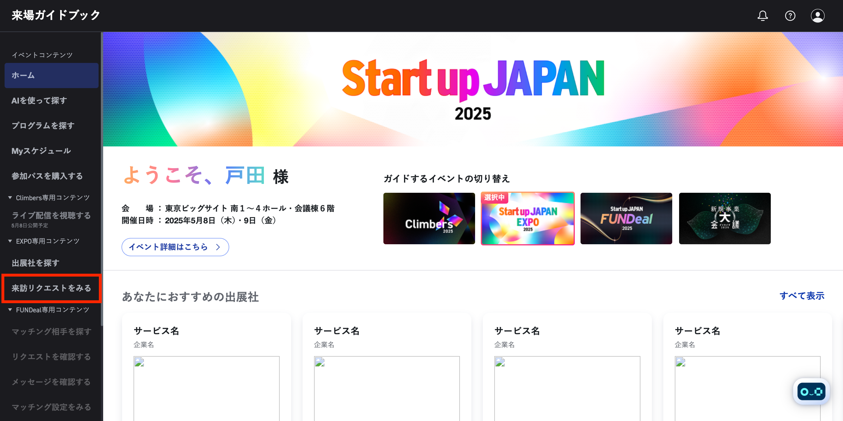 ※本ページでは「Startup JAPAN EXPO 2025 in 大阪」の画像を使用しておりますが、来場者ガイドブックの各イベントの操作導線は同じため、参考用としてご確認ください。